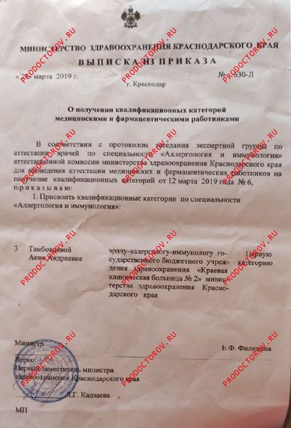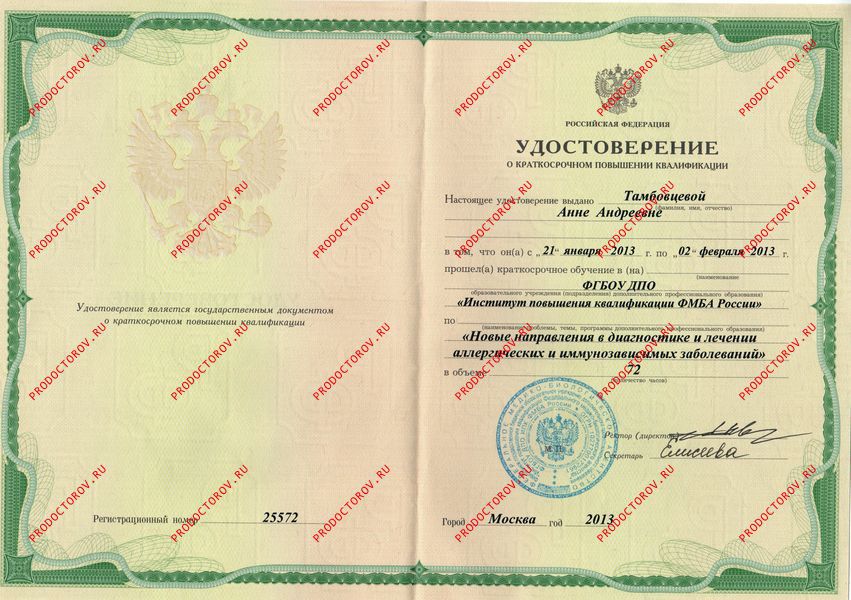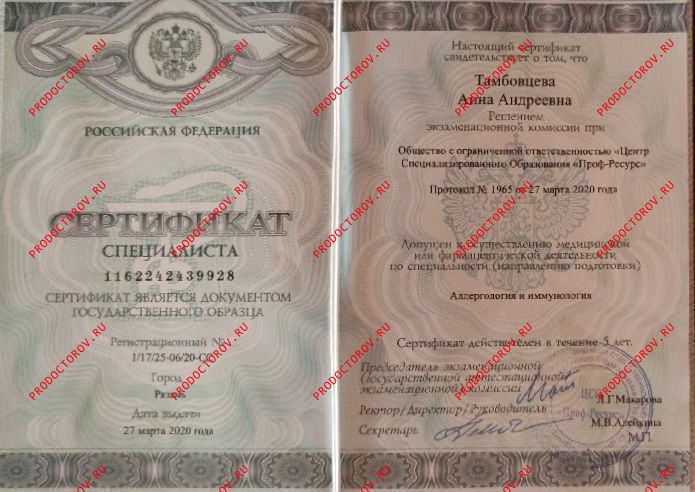 - 2020 г. "Многопрофильный центр Проф-ресурс". Аллергология и иммунология (повышение квалификации).